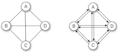 - 방향 그래프 : 방향이 있는 그래프, 간선 수 (n(n-1)개)
