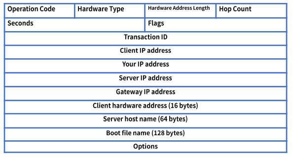 - Client IP : 최소 0.0.0.0, Your IP : 할당된 IP, Options : DHCP 메시지 타입 포함