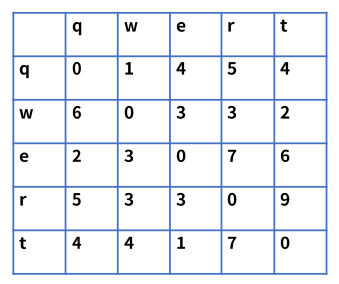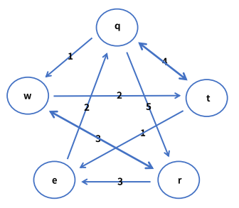 - 비용 : c(q, w) = 1 / c(q, r) = 5 / c(q, t) = 4