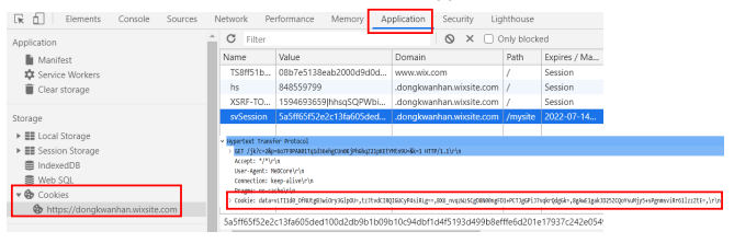 - 웹 브라우저(크롬)에서 웹사이트 접속 후 F12 클릭 - 메뉴 - Application - Cookie
