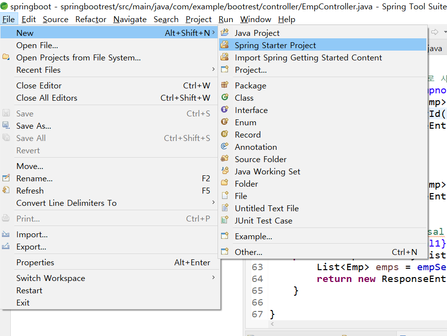 File -> New -> Spring Starter Project