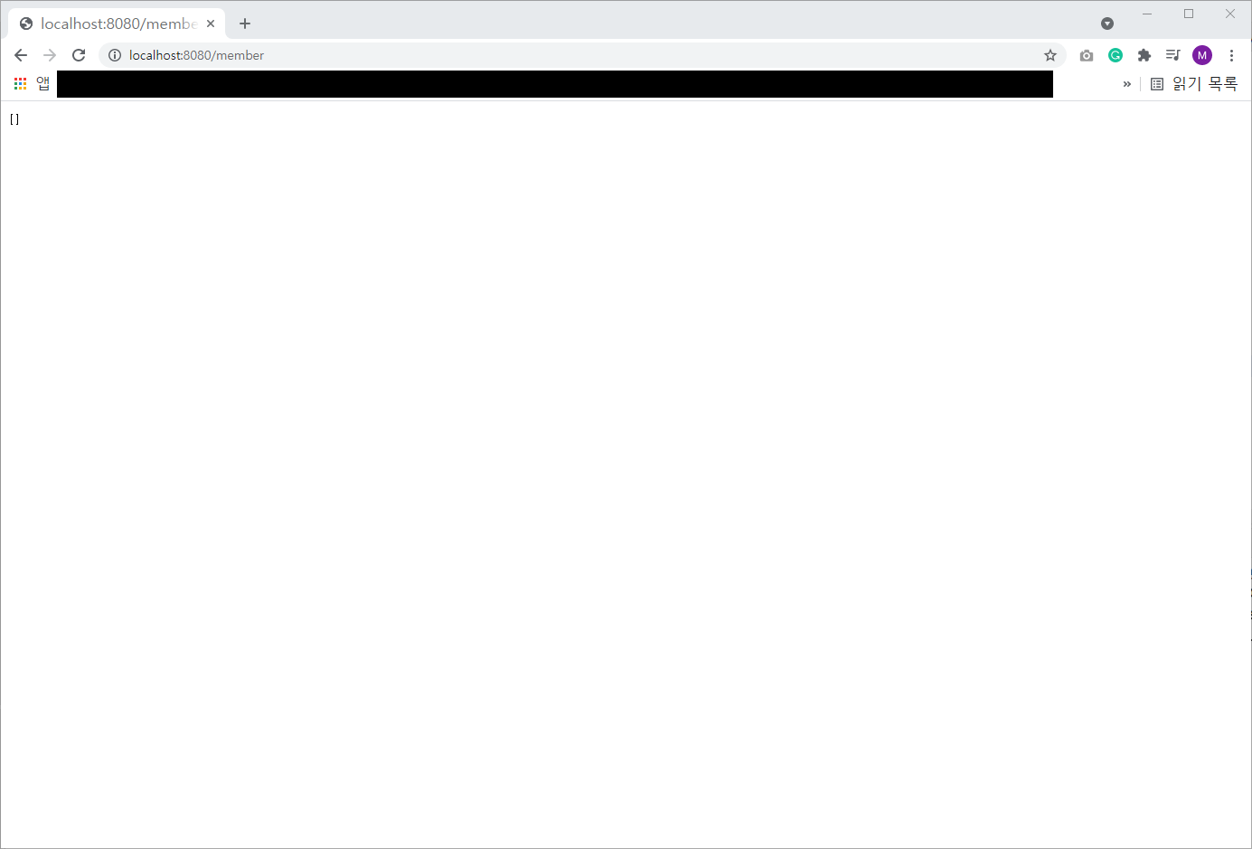 인터넷 창(저는 크롬을 사용했습니다)에 localhost:8080/member로 요청을 보내보시면 아래와 같은 페이지가 보일 것 입니다