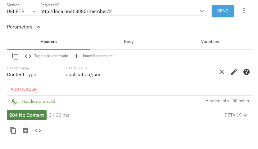 Delete로 요청을 하며 요청 URL은 한명의 고객 정보를 조회할 때와 동일한 URL 입니다