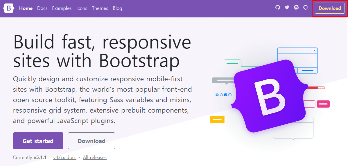 (링크 클릭하셔도 들어가실 수 있어요. https://getbootstrap.com)