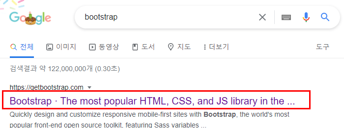 구글 검색창에 Bootstrap이라고 검색을 하셔서 제일 첫번째로 보이는 링크로 들어가주시면 되요.