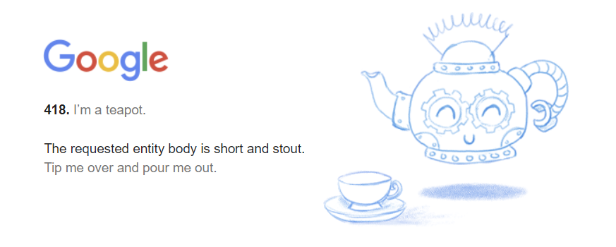 "418 에러 - I'm a teapot - 서버는 커피를 찻 주전자에 끓이는 것을 거절합니다."