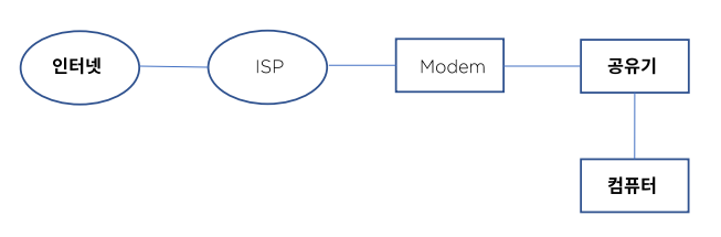 * 인터넷 - ISP - 모뎀 - 공유기 - 컴퓨터