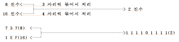 8/16 진수 <-> 2 진수