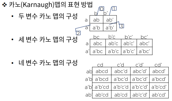- 카노(Karnaugh)맵의 표현 방법