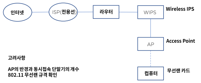 * 인터넷 - ISP - 라우터 - WIPS - AP - 컴퓨터