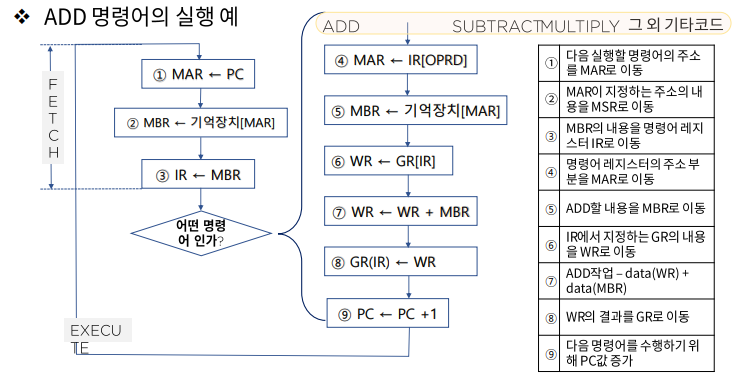 - ID로 부터 보내져온 신호에 따라 명령어를 실행 (clock에 의해 발생)