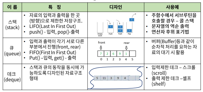 * 스텍, 큐, 데크 (STACK, QUEUE, DEQUE)의 특징 비교 및 활용 예