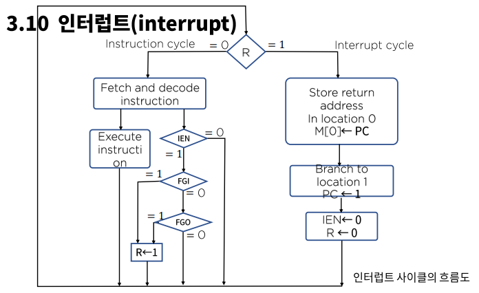 - [인터럽트 실행시] M[0] <- 256, PC <- 1, R <- 0 (clear)