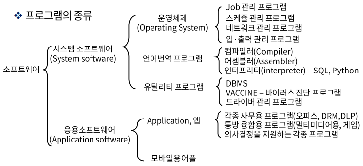 * 소프트웨어는 시스템 소프트웨어와 응용 소프트웨어로 나눌 수 있다