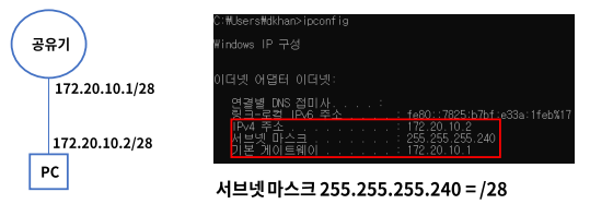 - 1 AND 1 = 1 의 공식으로 네트워크 주소를 확인한다