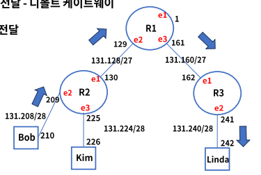 2. 목적지 IP 줏는 자기대역이 아니므로 R2로 전달 - 디폴트 게이트웨이