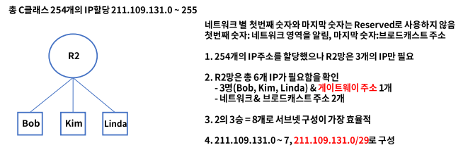 서브넷 마스크는 LAN 설계 시 C 클래스 (256개) 단위로 많이 나눔