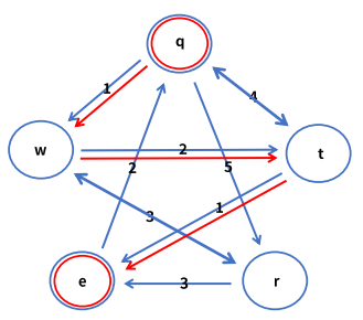 - 비용 : c(q, w) = 1 / c(q, r) = 5 / c(q, t) = 4