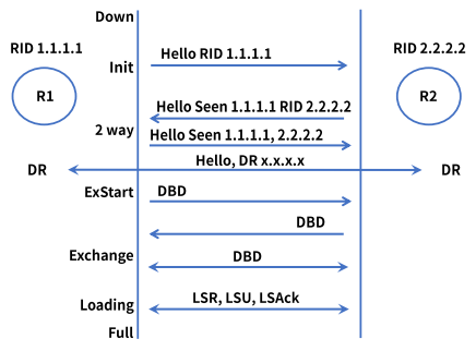 * 네이버 테이블은 Down -> Init -> 2 way -> ExStart -> Exchange -> Loading -> full 상태로 표현