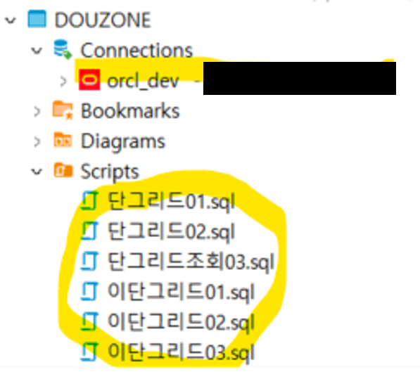 • Scripts : 저장한 모든 sql 파일이 있는 폴더
