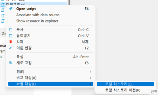 ① 내역을 보고 싶은 스크립트 우클릭 > 바꿀대상 > 로컬 히스토리 클릭