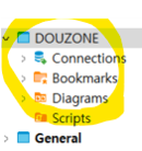 메뉴 구성 : Connections, Bookmarks, Diagrams, Scripts