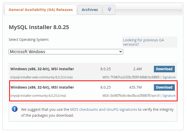 다운받은 mysql-installer-community-8.0.25.0 클릭하여 실행시켜 주세요